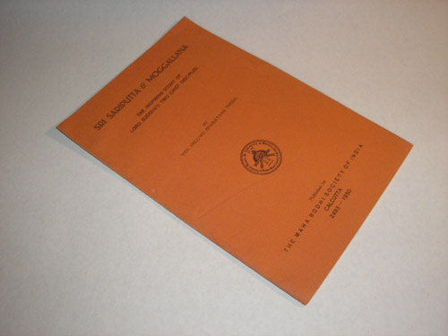 | 12139 | Ramakrishna, Sri | The Light From Beyond | The Vedanta Society The Vedic Temple, 1206 N. W. 25th Avenue, Portland, Oregon | Fair. The covers have moisture stains and chipping. There's glue soak through on the inside flaps and the staples are rusty. | 3.75 x 6 inches, this small book is "An adaptation from the Life and Teachings of Sri Ramakrishna." This copy was printed by the Vedanta Society in Portland, Oregon, and has a photo frontis picture of Sri Ramakrishna | Religion, Hindu, Sri Ramakrishna, Portland, Oregon | $20 |
