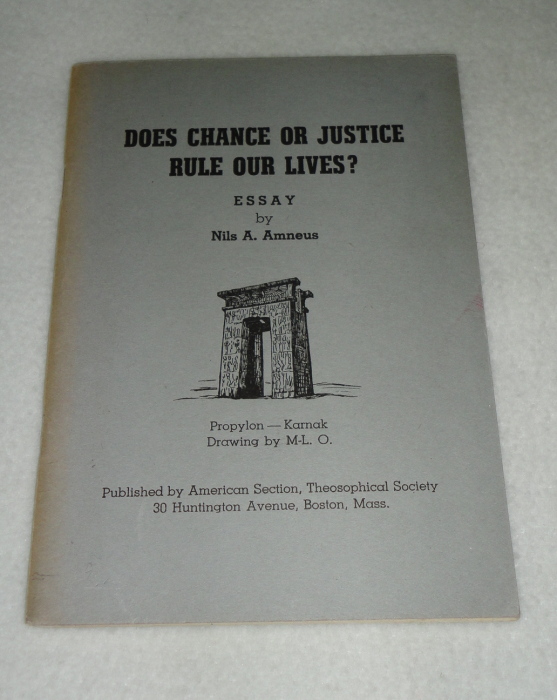 | 12127 | Amneus, Nils A. | Does Chance Or Justice rule Our Lives? | American Section, Theosophical Society | Good. Light shelf wear and soiling on the covers. | An early or first edition of "Does Chance Or Justice....." | Theosophy, Religion | $20 |