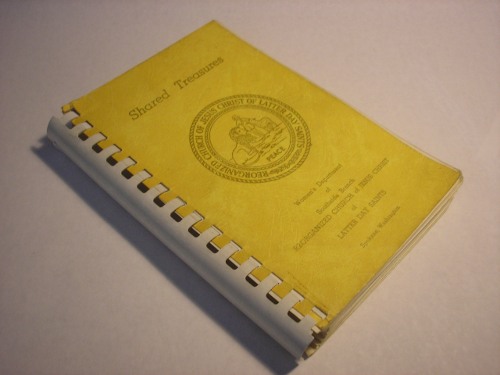 | 12425 | Women's Department of Southside Branch Reorganized Church os Jesus Christ of Latter Day Saints | Shared Treasures | Self-published | Good. Shelf wear and soiling on the covers. Pages show some wear on the edges. | Spokane, Washington Reorganized Church of Jesus Christ of Latter Day Saints Cook Book. Plastic spiral binding. | Religion, Cooking, Pacific Norhwest, Washington State, Mormon, LDS | $30 |