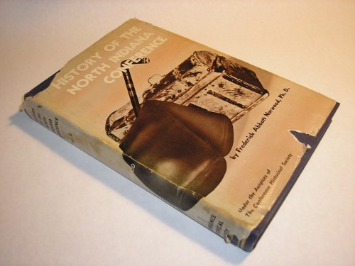 | 12431 | Norwood, Frederick Abbott, Ph. D. | History of The North Indiana Conference 1917-1956 North Indiana Methodism in the Twentieth Century | The Conference Historical Society | Good. Light shelf wear and soiling on the covers. Owner's name and address inside. Discoloring on both paste down endpapers. In a poor dustwrapper with chips, tears and general wear. | A history of North Indiana Methodism. There are 12 appendices. Lists of living ministers, deceased ministers, many b&w photos and in index. | Religion, Methodism, Indiana | $20 |