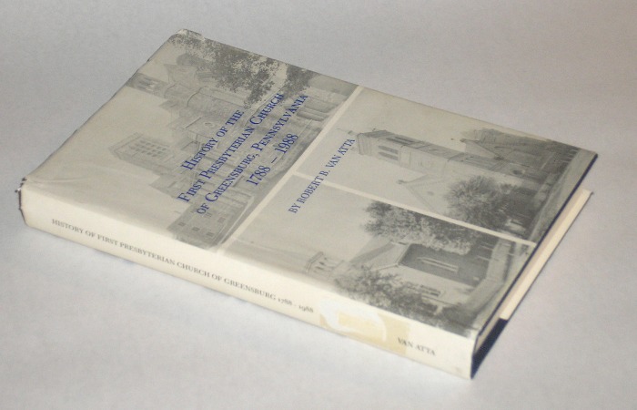 | 12723 | Van Atta, Robert B. | History Of The First Presbyterian Church Of Greensburg, Pennsylvania 1788 - 1988 | Self published | Fine. In a fair to good dustwrapper that has two tears and one scrape mark. | History Of The First Presbyterian Church Of Greensburg, Pennsylvania 1788 - 1988. There are many b&w photos, illustrations, lists of officers, appendicies, bibliography and an index. | Religion, history, First Presbyterian Church, Greensburg, Pennsylvania | $25 |