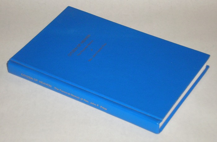 | 12877 | Price, Rev. John Franklin Price | Citizen Of Heaven The Personal Memoir of Rev. John Franklin Price | Self-published | Fine. No dust wrapper. | A biography of Rev. John Franklin Pride edited by Prudy Taylor board and Esther B. Colcord. There are b&w photos. Rev. Price was a Baptist in Florida. | Religion, Baptist, Florida, biography, John Franklin Price. | $20 |