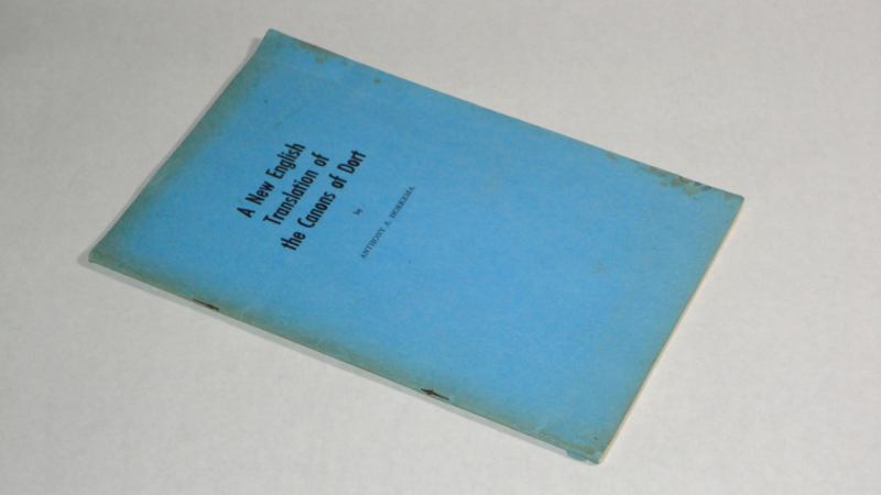 | 14093 | Hoekema, Anthony A. | A New English Translation of The Canons Of Dort | Calvin Theological Journal | Good. Some soiling on both covers. A vertical crease on both covers and contents. | The Canons of Dort. | Religion, the canons of Dort | $20 |