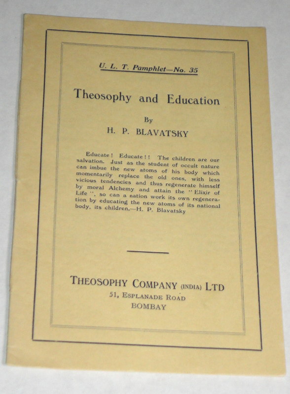 | 14567 | Blavatsky, H. P. | Theosophy and Education | Theosophy Company (INDIA) LTD | Very good. | U. L. T. Pamphlet-No. 35. Religion | Religion, Theosophy | $20 |