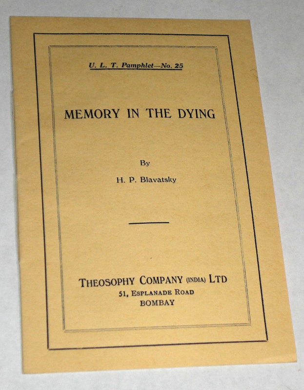 | 14568 | Blavatsky, H. P. | Memory in the Dying | Theosophy Company (INDIA) LTD | Very good. | U. L. T. Pamphlet-No. 25. Religion | Religion, Theosophy | $20 |