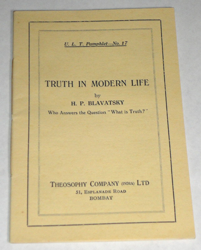 | 14570 | Blavatsky, H. P. | Truth In Modern Life | Theosophy Company (INDIA) LTD | Very good. | U. L. T. Pamphlet-No. 17. Religion | Religion, Theosophy | $20 |
