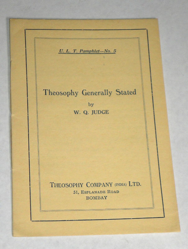 | 14573 | Judge, W. Q. | Theosophy Generally Stated | Theosophy Company (INDIA) LTD | Very good. | U. L. T. Pamphlet-No. 5. Religion | Religion, Theosophy | $20 |