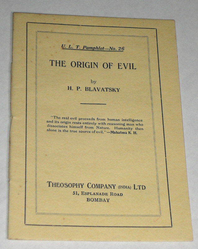 | 14576 | Blavatsky, H. P. | The Origin Of Evil | Theosophy Company (INDIA) LTD | Good. A few faint specks on the front cover. | U. L. T. Pamphlet-No. 26. Religion | Religion, Theosophy | $20 |