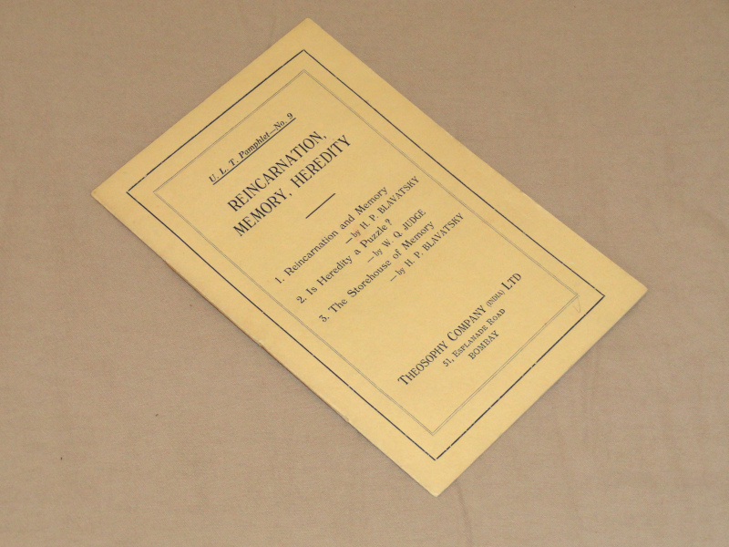 | 15819 | Blavatsky, H. P. and W. Q. Judge | Reincarnation, Memory, Heredity | Theosophy Company (INDIA) LTD | Very good. | U. L. T. Pamphlet-No. 9. Religion | Religion, Theosophy | $20 |