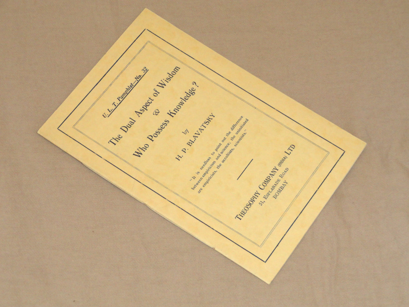 | 15820 | Blavatsky, H. P. | The Dual Aspect of Wisdom Who Possess Knowledge? | Theosophy Company (INDIA) LTD | Very good. | U. L. T. Pamphlet-No. 32. Religion | Religion, Theosophy | $20 |