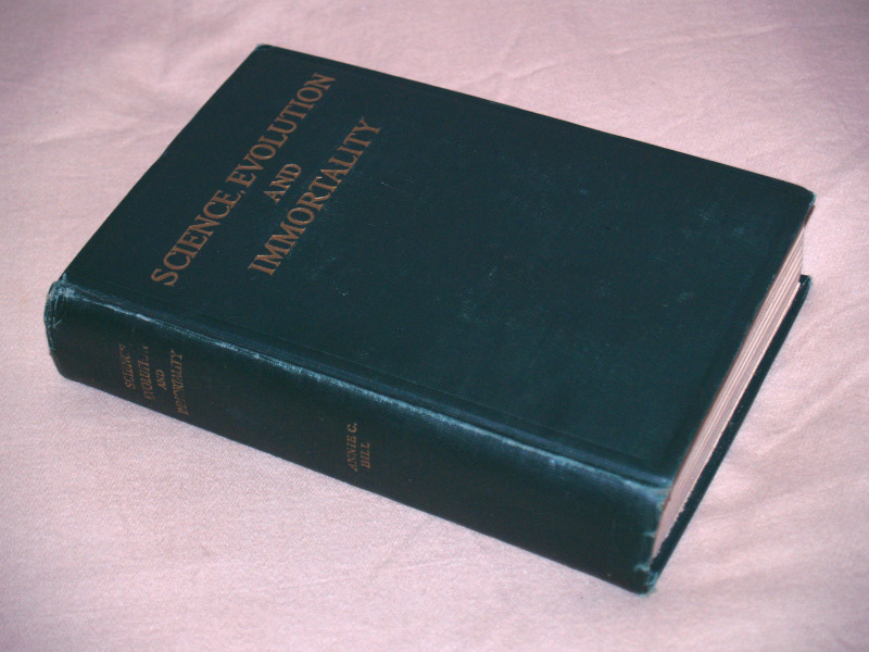 | 16459 | Bill, Annie C. | Science, Evolution, And Immortality | A. A. Beauchamp | Good. Inside front cover, front free end paper (back side as well), covered with notes in ink. The back free end paper is covered with notes in ink as well. Owner's name in ink on the title page. Spine and covers have wear and soiling. Occasional underlining. No dust wrapper. | Christian Science...religion, philosophy. | Religion, Christian Science | $35 |