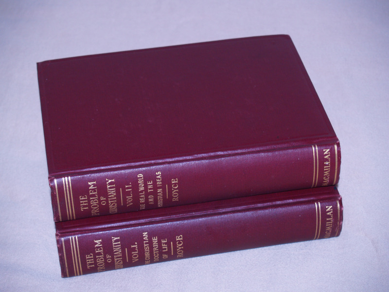 | 16477 | Royce, Josiah | The Problem Of Christianity Two Volumes | The Macmillan Company | Good. Light shelf wear and soiling. Volume 1 has a book plate and two owners names in ink inside. No dust wrapper. Volume 2 has a book plate and one owner's name in ink inside. | Christianity. "Lectures Delivered At The Lowell Institute In Boston, And At Manchester College, Oxford." | Christianity, Religion, Idealism | $75 |