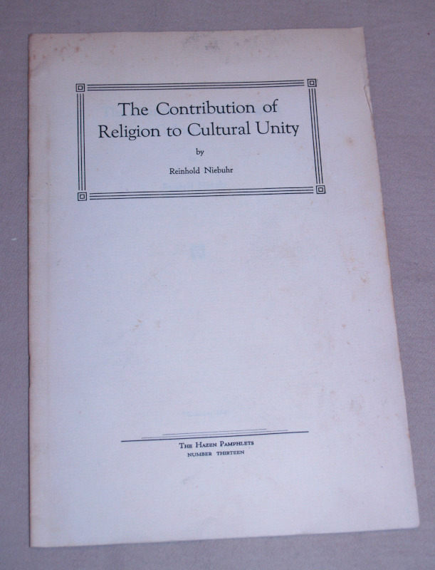 | 16714 | Niebuhr, Reinhold | The Cointribution of Religion to Cultural Unity | The Hazen Pamphlets | Good. Front cover has some soiling and edge wear. | Religion, culture. | Religion, Culture | $35 |