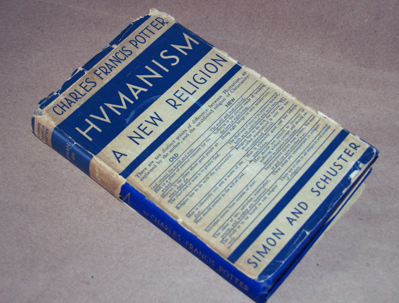 | 16928 | Potter, Charles Francis | Humanism A New Religion | Simon And Schuster | Good. Front gutter has glue remains? Or something. Dust wrapper in pieces | Humanism. | Religion, Humanism | $75 |