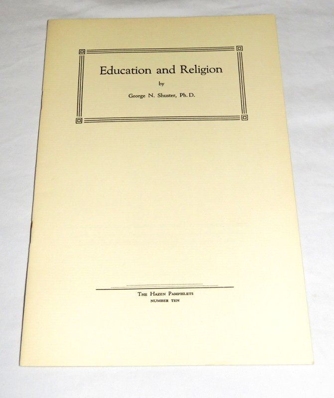 | 17206 | Shuster, George N., Ph.D. | Education and Religion | The Hazen Pamphlets Number Ten | Good. Lightly rusted staples | Education & Religion | Religion, Culture | $20 |