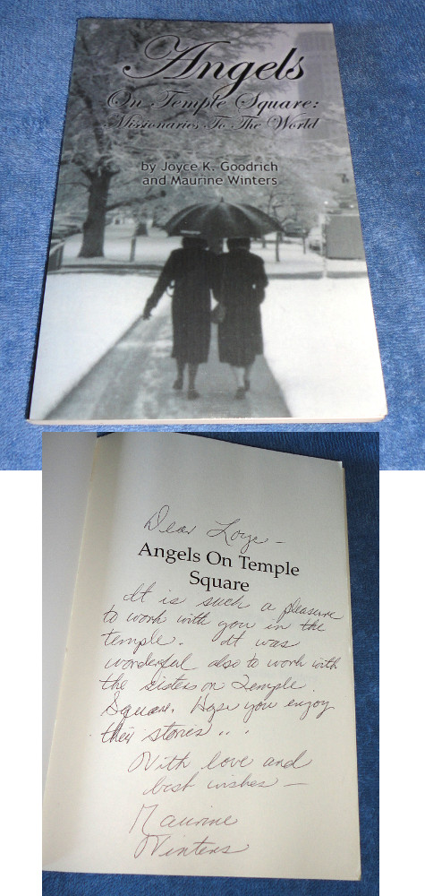 | 17234 | Goodrich, Joyce K., and Maurine Winters | Angels On Temple Square: Missionaries To The World | Writer's Club Press | Good. Light shelf wear | Latter Day Saints, Mormon, missionaries. There's a long inscription with a signature by Maurine Winters. | Religion, LDS, Latter Day Saints, Mormon | $20 |