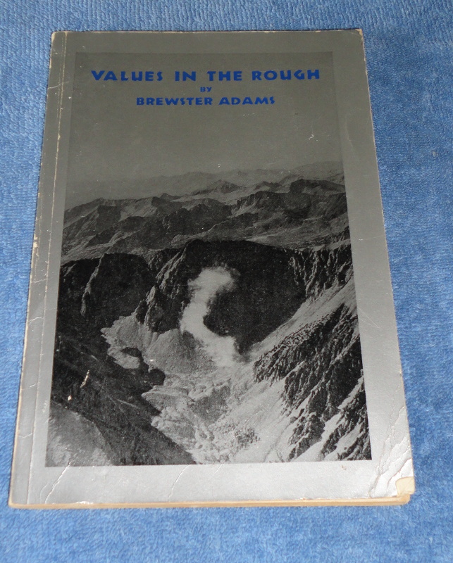 | 17254 | Adams, Brewster | Values In The Rough | The Nevada State Journal | Good. Covers worn, especiall the back cover, creasing and scrape marks. | Inspiration, Adam's writings in the Nevada State Journal, 1934. Owner's ink writing in the front. Fragile pages. | Nevada, Inspiration, Religion | $20 |