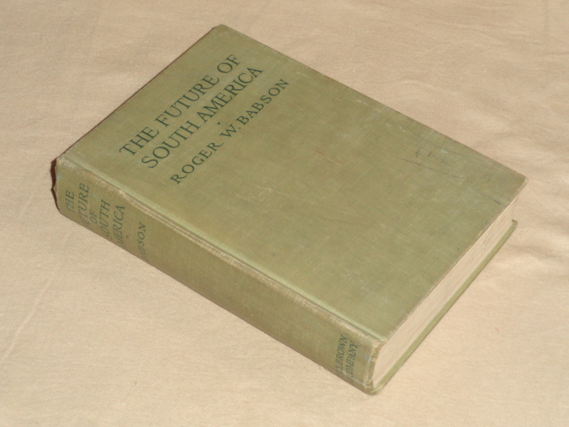 | 6230 | Babson, Roger W. | The Future of South America | Little, Brown, And Company 1917 with 407 pages, b&w photos, fold out map and index. | Good. Covers and spine are shelf worn and a little soiled, fold out map has a two inch tear. No dust wrapper. Owner's name in ink on the front endpaper. | South America | South America | $18 |
