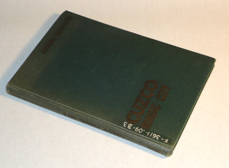 | 9294 | Barrionuevo, Alfonsina | Cuzco magic City | Editorial Universo S.A. 1969 hardback with 288 pages, b&w and color photos, bibliography and an index. Inscribed by the author. | Good. Ex - Library, a presentation copy to the library from the author. Fade mark, worn lettering, white ink library number on the front cover. Top of spine worn fuzzy. Spine cloth and lettering faded. Library card pocket and rubber stamp inside back cover. Presentation book plates inside front cover. No dust wrapper. | Cuzco, Peru. There are many b&w and color photos. | Cuzco, Peru, South America | $20 |