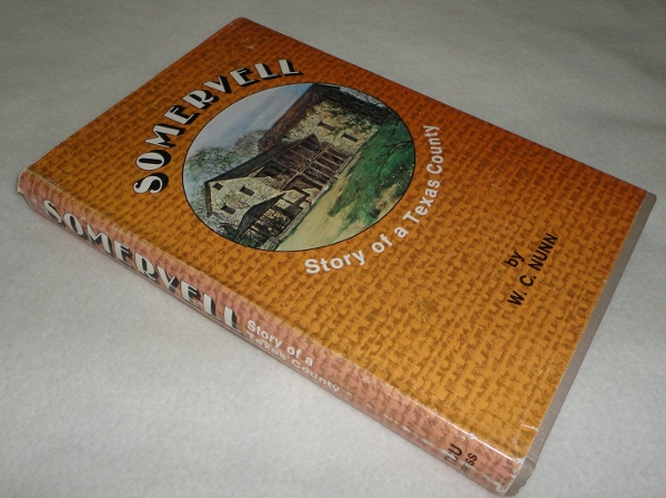 | 12281 | Nunn, W. C. | Somervell Story of a Texas County | Texas Christian University Press | Fine. In a good, lightly worn, dust wrapper. | A history of Somervell County, Texas. There are b&w photos, footnotes, bibliography, appendicies, index and endpaper maps. | Somervell County, Texas | $20 |