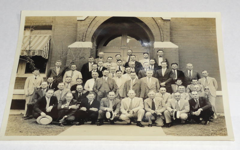 | 14678 | Mc Afee, G. A., Commercial Photographer | Group Photo, circa 1920s, Dallas, Texas | G. A. McAfee | Good | 8 x 10 group picture possible of oil executives. Posed under a 'Magnolia Institute' sign. Persons labeled on the back side | Texas, Magnolia Institute, G. A. McAfee, photography | $20 |