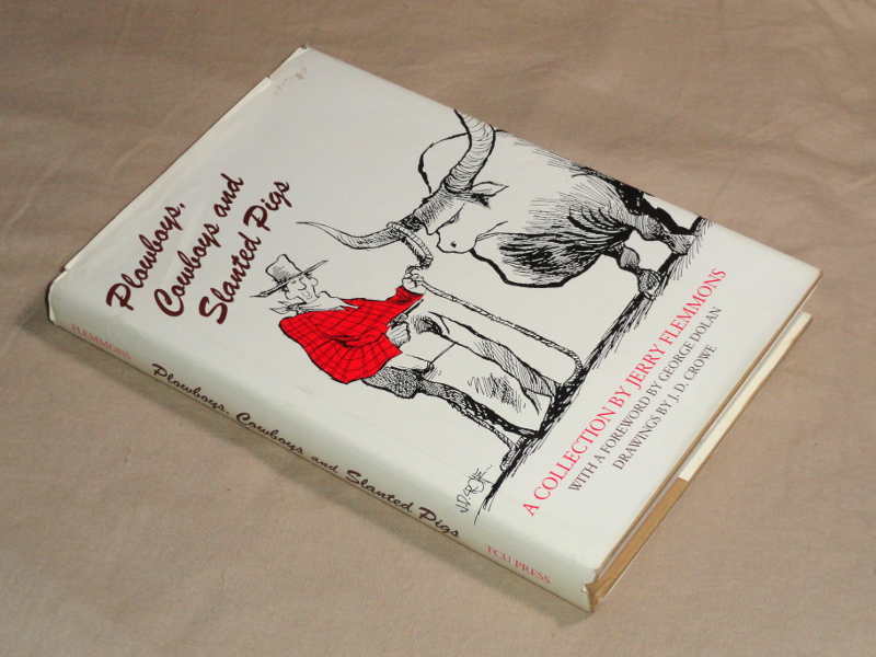 | 4024 | Flemmons, Jerry | Plowboys, Cowboys and Slanted Pigs | Texas Christian University Press | Fine. In a good dust wrapper. | 1984 hardback signed by Flemmons, with 230 pages and wonderful illus. by J. D. Crowe | Texas, humor | $20 |
