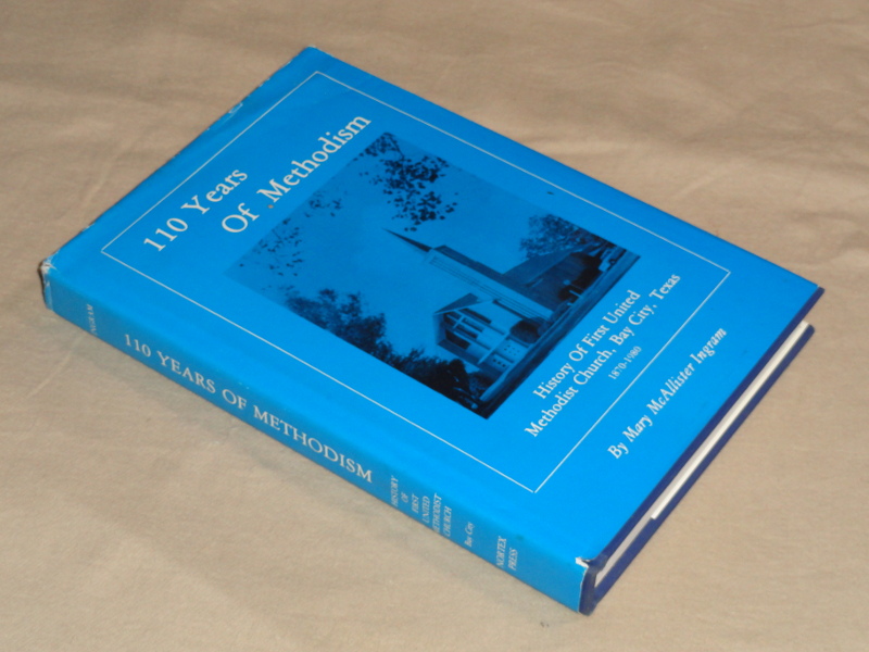 | 5203 | Ingram, Mary McAllister | 110 Years Of Methodism History of First United Methodist Church Bay City, Texas 1870-1980 | Nortex Press | Fair with yellow high lighter during the first third of the book, in a good dust wrapper. | 1980 hardback with 236 pages and b&w photos, tipped in picture of the author. | Religion, Texas, Methodist | $16 |