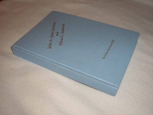 | 7396 | Hall, Lillian (Jacobson) | John A. (Jake) Jacobson and Olivia C. Anderson | Self published | Very good. No dust wrapper. | 1991 hardback with 338 pages and b&w photos, signed by the author.Swedish-American, History, biography, John Jacobson, Olivia Anderson, Texas, Modesto, California, Haywards, CA, Sebastopol, CA, Sweden. | Swedish-American, History, biography, John Jacobson, Olivia Anderson, Texas, Modesto, California, Haywards, CA, Sebastopol, CA, Sweden | $30 |