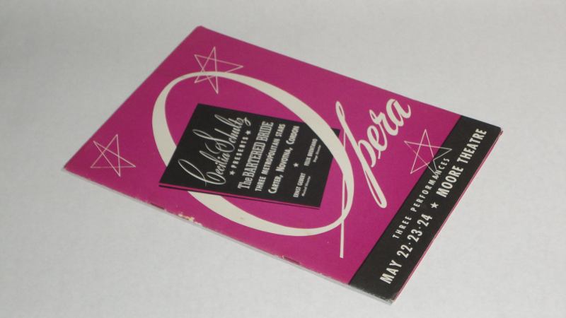 | 14066 | Schultz, Cecilia | The Bartered Bride | Cecilia Schultz | Good. Faint shelf wear. | 7 x 10 inches stapled brochure of Cecilia Schultz presents The Bartered Bride, opera in the 1940s at the Moore Theatre in Seattle. | Ephemera, Moore Theatre, Seattle, Washington, Cecilia Schultz | $20 |