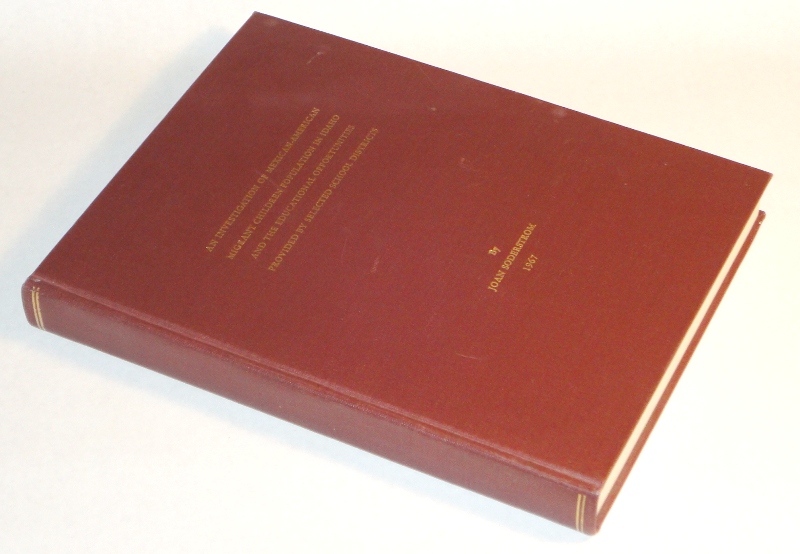 | 8968 | Soderstrom, Joan | An Investigation Of Mexican-American Migrant Children Population In Idaho And The Educational Opportunities Provided By Selected School Districts | Self 1967 8.5 X 11 inches with 199 pages printed on one side. | Very good. No dust wrapper. | Mexican-American, Migrant Children, Idaho, masters thesis, thesis, Pacific Northwest | Mexican-American, Migrant Children, Idaho, masters thesis, thesis, Pacific Northwest | $20 |