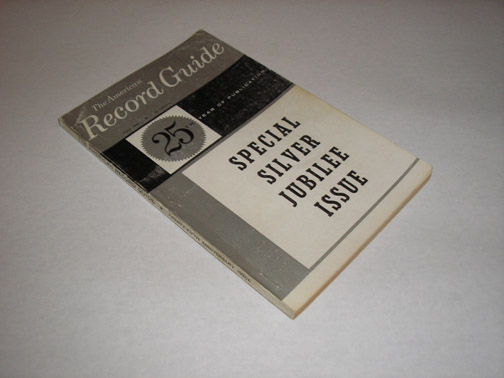 | 10848 | Lyons, James, Editor and Publisher | The American Record Guide Incorporating The American Tape Guide May, 1955, Volume 25, Number 9 | James Lyons | Good. Light shelf wear and soiling on the covers. | May 1959 25th Year of Publication Special Silver Jubilee Issue, stapled paperback, with 143 pages (numbered 563-706) and ads. | Music, American Record Guide, American Tape guide, Trade Catalog | $25 |