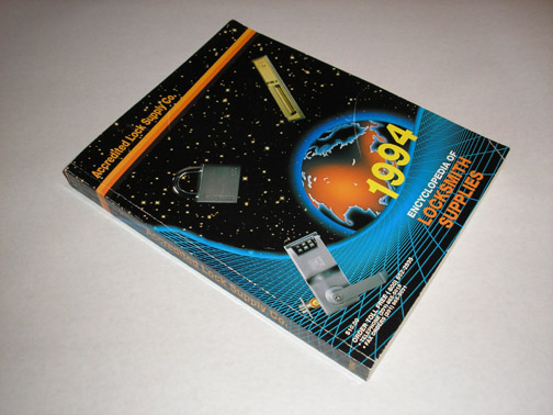 | 10876 | Accredited Lock Supply Co. | 1994 Encyclopedia of Locksmith Supplies | Accredited Lock Supply Co. | Very good, with light shelf wear. The lower tip of the front corner has a sharp crease. | 1994 paperback, 8.5 x 11 inches, with 490 pages, many illustrations and an index. | Accredited Lock Supply, Lock Supply, trade catalog | $30 |