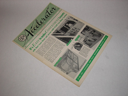 | 11784 | Electric Controller & Mfg. Co. | ECM Accelerator Vol. 1 No. 34 | Electric Controller & Mfg. Co. | Good. There's a rubber stamp on the front, light shelfwear and soiling and a horizontal fold mark. There's one short horizontal tear on the spine and a longer vertical tear along the bottom, right in the spine fold. | Electric Controller & Mfg. Co. newsletter. Industrial electronic controlers. | Electric Controller & Mfg. Co., Trade catalog | $20 |