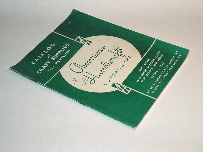 | 13327 | American Handicrafts Company | Catalog of Craft Supplies 1950 Revision | American Handicrafts Company | Good. Rusty staples. Some ink numbers and a staple removal mark on the front cover. | 8.5 x ll inches, a crafts trade catalog with many illustrations, photos and an index. | Trade Catalog, American Handicrafts Company | $20 |