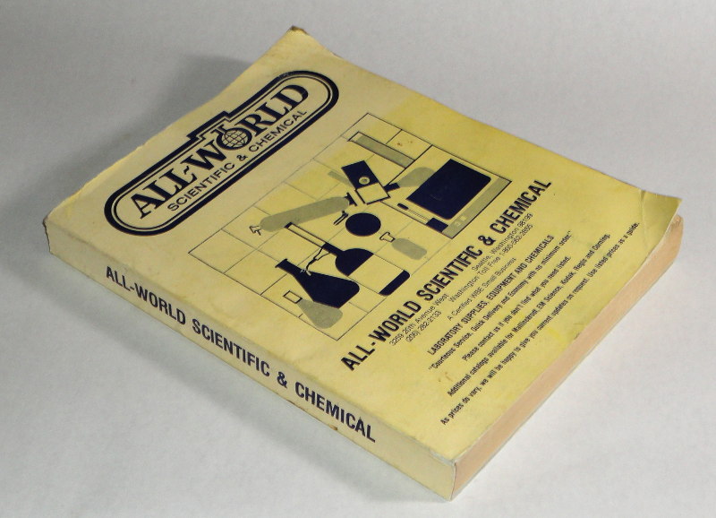 | 14550 | All-World Scientific & Chemical | All-World Scientific & Chemical Catalog | All-World Scientific & Chemical | Good. Covers have wear and creasing. Pages have creased corners. | 8.5 x 11 inches, All-World Scientific & Chemical Trade Catalog. | Trade Catalog, All-World Scientific & Chemical | $20 |