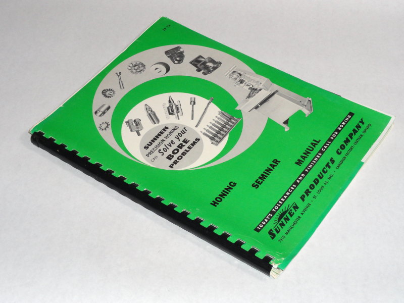 | 14994 | Sunnen Products Company | Honing Seminar Manual | Sunnen Products Company | Good. | 8 x 11 inches, comb binding, Sunnen Honing Supplies Trade catalog. Honing Stones, mandrels and accessories. There are many b&w photos and illustrations. | Trade Catalog, Sunnen Products, Honing | $20 |