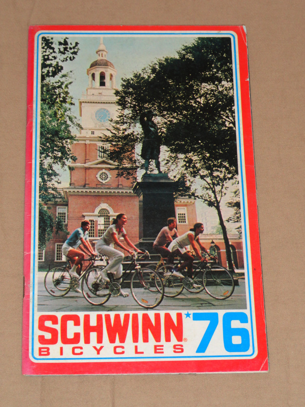 | 15757 | Schwinn Bicycle Company | Schwinn Bicycles 76 | Schwinn Bicycle Company | Good. Light shelf wear. | 5.5 x 8.5 inches, the Schwinn bicycle catalog for 1976 with many color pictures. | Trade Catalog, Schwinn Bicycle Company | $30 |