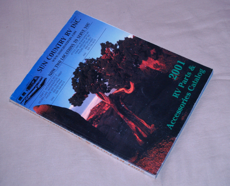 | 16851 | Sun Country RV Inc. | 2001 RV Parts & Accessories Catalog | Sun Country RV | Good. Covers have shelf wear. | 8.25 x 10.75 inch catalog of RV supplies in 2001. Mostly color illustrations. | Recreation Vehicle, Trade Catalog, Sun Country RV | $20 |