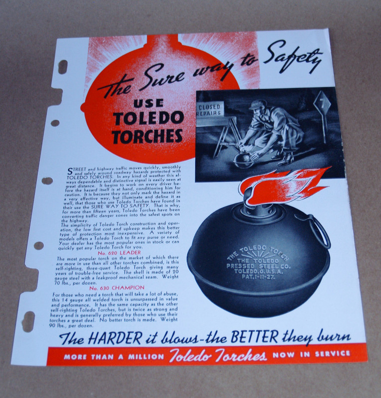 | 17000 | Staff | The Toledo Pressed Steel Co. | The Toledo Pressed Steel Co. | Very good. | The Toledo Pressed Steel Co., 'The Sure way to Safety' Use Toledo Torches | The Toledo Pressed Steel Co., trade catalog, Toledo Torches | $20 |