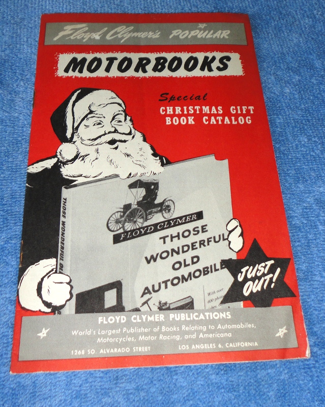| 17244 | Clymer, Floyd | Floyd Clymer's Popular Motorbooks Special Christmas Gift Book Catalog | Floyd Clymer Publications | Good. Vertical crease, some creasing, back cover has a bit of soiling | 5.25 x 8.25, Illustrations and prices of Clymer's automotive books. | Automotive, trade catalog | $20 |