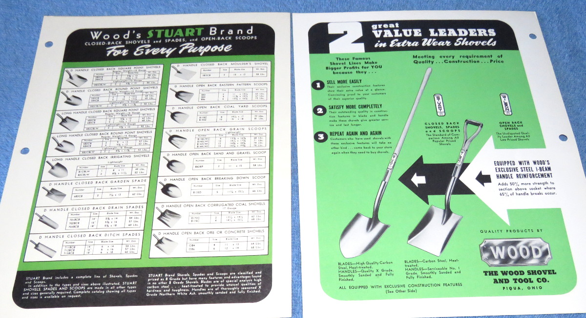 | 17546 | The Wood Shovel And Tool Co. | The Wood Shovel And Tool Co., Catalog Pages | The Wood Shovel And Tool Co. | Very good. | Two catalog pages for The Wood Shovel And Tool Co., Piqua, Ohio. | Trade Catalog, The Wood Shovel And Tool Co., Piqua, Ohio, ephemera | $20 |