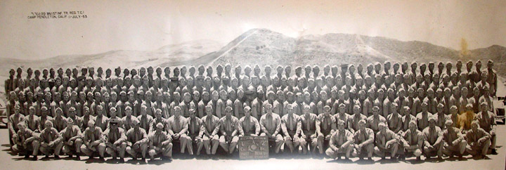 | 12876 | USMC | Panaoramic Photo "L" CO 2D BN 1ST INF. TR REG. T.C. 1 Camp Pendleton, California | USMC | Good. Stored tightly rolled so it resists staying flat. | 11 July 1953, A black and white panoramic photo, 24.5 inches wide and 9 inches high. This picture has been stored "rolled up," so it doesn't want to lay flat. There are two brown stains on the right side, otherwise it is in good condition. United States Marine Corps USMC. | USMC, photography, ephemera | $50 |