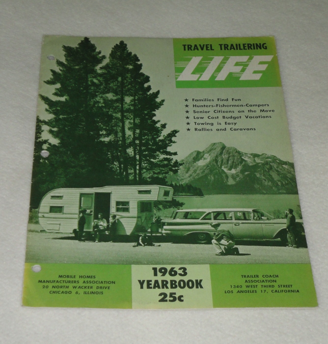 | 12149 | Mobile Homes Manufacturers Association | Travel Trailering Life 1963 Yearbook | Mobile Homes Manufacturers Association | Good. Very good except for being punched for a 3 hole binder. | 8.25 x 11 inches with interesting articles and pictures of RVs from the 1960s. There are no all aluminum trailers pictured. | Recreation Vehicle, RV travel | $20 |