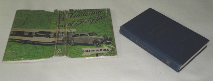 | 12175 | Dole, Mary H. | Trailering at Sixty-five | Exposition | Fair to good. Remains of a label on the back of the front cover, the front free endpaper has a 4 inch tear and 4 lines of ink. The back cover has some stains on top. In a poor dust wrapper. | Pulling a very large trailer with a small Ford car in the 1940s. Very interesting. | Recreation Vehicle, RVing | $30 |