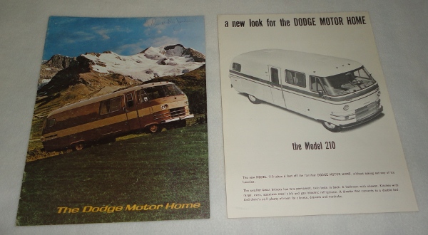 | 12328 | Travco Corporation | The Dodge Motor Home | Travco Corporation | Good. Light shelf wear on the covers and the owner's name on the front cover in ink. | 8.5 x 11 inch 8 page brochure for the Dodge Motor Home. There's a separate sheet for the model 210 | Dodge Motor Home, automotive, recreation vehicle | $20 |