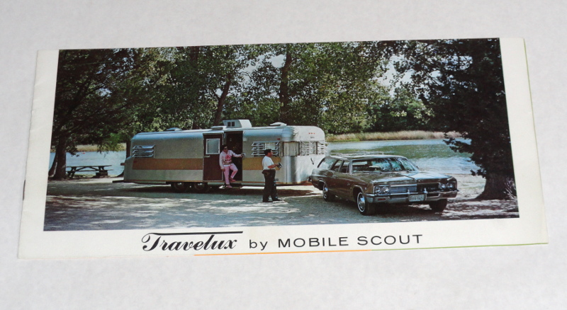 | 14812 | Mobile Scout | Travelux by Mobile Scout | Mobile Scout | Very good. Trailer sales rubber stamp x 2 on the back. | 11 x 5.5 inches, a brochure for the Travelux travel trailer. In color. | Travelux, Mobile Scout, recreation vehicle | $20 |