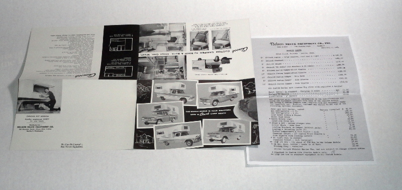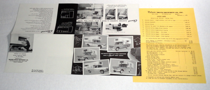 | 15205 | Mair & Son | The Whole World Is Your Backyard With A Chinook Camp Coach | Mair & Son | | 3 fold 17 x 11 inch literature for Chinook Campers made in Union Gap, Washington. Also included is a copy of an original price sheet from 1961. | Recreation Vehicle, ephemera, Chinook Camper | $20 |