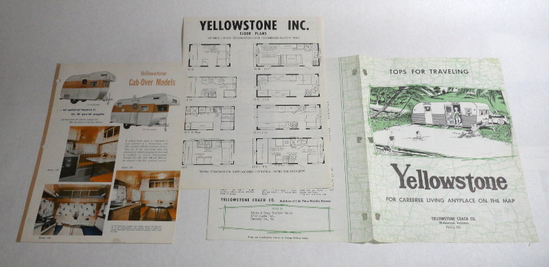 | 15460 | Yellowstone Coach Co. | Yellowstone Coach Co. Literature | Yellowstone Coach Co. | Good. One piece is punched for a 3 hole binder, one piece has a corner clipped. | 8.5 x 11 inches, three different brochures. Yellowstone For Carefree Living Anyplace on the Map, Yellowstone Cab-Over Models and Yellowstone Floor Plans. | Recreation Vehicle, Yellowstone Trailers, Automotive, ephemera | $20 |