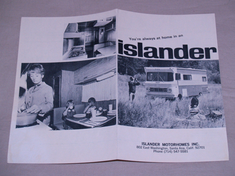 | 16813 | Islander Motorhomes Inc. | You're Always at Home in an Islander | Islander Motorhomes Inc. | Very good. | 5.5 x 8.5 inch brochure for Islander Motorhomes, circa 1960s. B&w photos and specifications. | Islander Motorhome, recreation vehicle | $20 |
