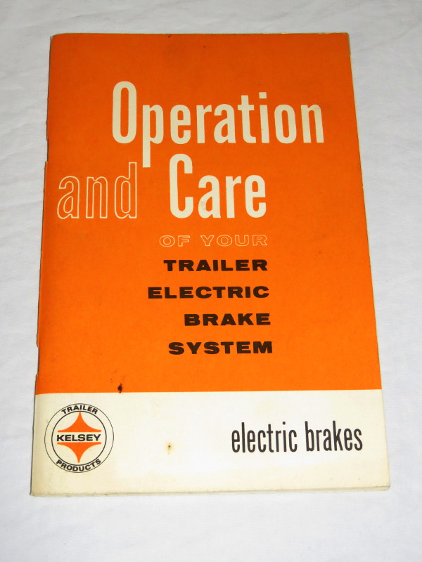 | 17278 | Kelsey Hayes Company | Operation and Care Of Your Trailer Electric Brake System | Kelsey Hayes Company | Good. Covers a little soiled | Installation and operation of 1960s RV Trailer Electric Brakes. | Recreation Vehicle, Vintage RV, Kelsey-Hayes | $20 |